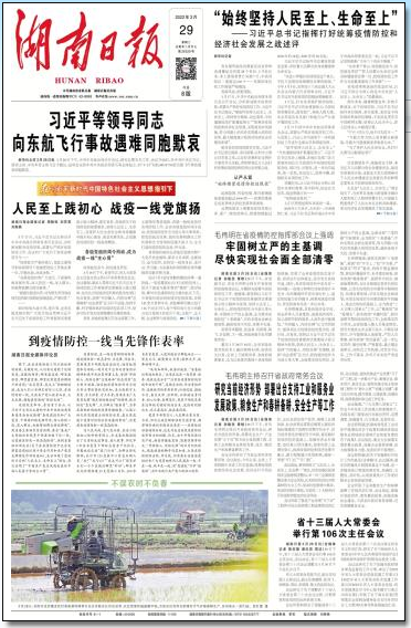 3月23日,湘潭确诊病例实现动态清零;3月27日中午12时起,怀化主城区解除临时交通管制,有序恢复正常生产生活……我们坚信,在党中央坚强领导下,全省广大党员干部群众勠力同心、众志成城,一定能打赢这场疫情防控阻击战、歼灭战,驱散阴霾、共赴春光!