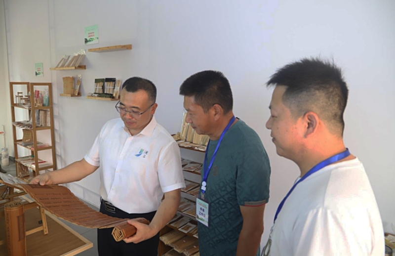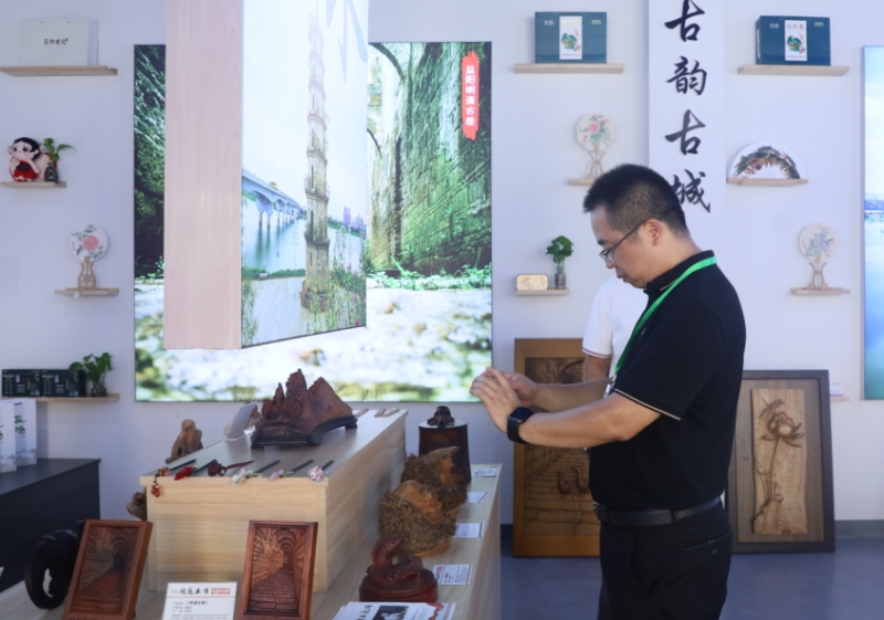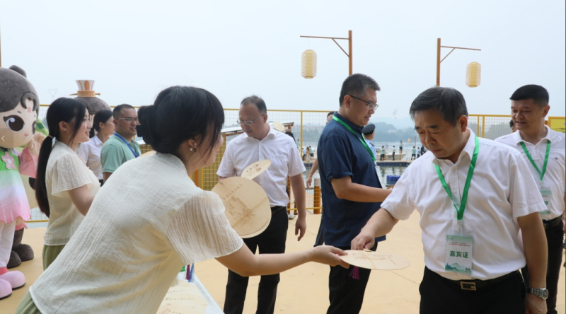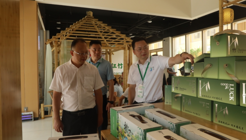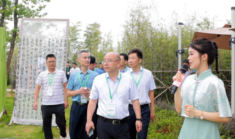 初秋时节的桃花江竹海景区,茂林修竹,碧波微漾。雅致的天问书院、精巧的竹间酒店、绚丽的彩虹大道、包罗万象的竹博览馆错落有致,镶嵌林间,引人探寻。在景区游客中心,IP角色人偶携手“竹海幻境”快闪趣味演绎热情迎宾。竹海夜集地方特色展厅集中展示益阳市文旅产业发展成果,各类产品琳琅满目,尽显益阳文旅的创意与活力。与会领导嘉宾们兴致盎然,一边观摩一边交流,深入感受景区优美的自然风光与良好的生态环境,对景区在文旅新业态新场景打造、历史文化保护传承、文创产品开发应用等方面的做法给予高度赞赏。