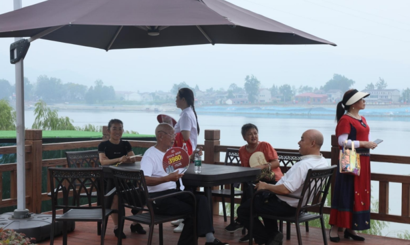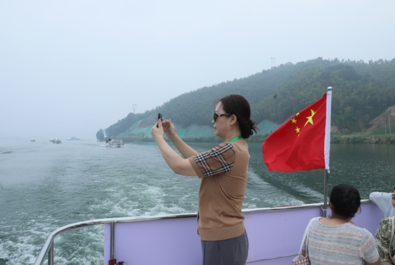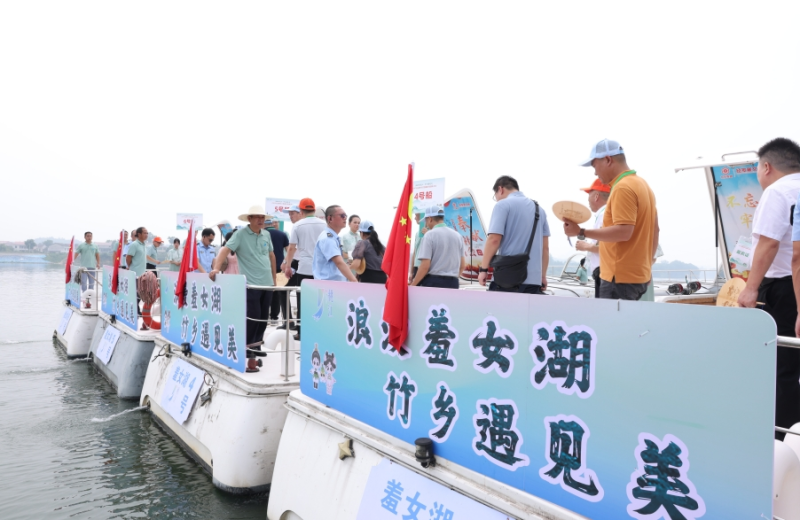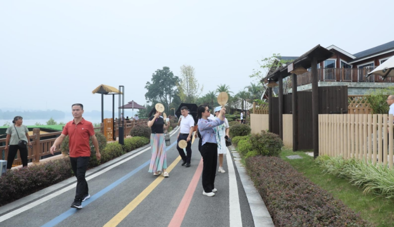 三堂街镇水岸湿地度假庄园作为桃江首家湖南省四星级旅游民宿的示范样板,是观赏资江广袤美景的绝佳之地。与会领导嘉宾们沿着江边步道漫步前行,观赏热带风情民宿群,感受拂面而来的宜人江风。大家在品尝当地传统美食的同时,亲身体验桃江民俗打擂茶,尽享民俗魅力与江景浪漫。登上这里的游船码头,乘船沿江前往修山镇羞女湖国家湿地公园,一路江水潋滟,两岸绿植繁茂,别有一番超脱与宁静。