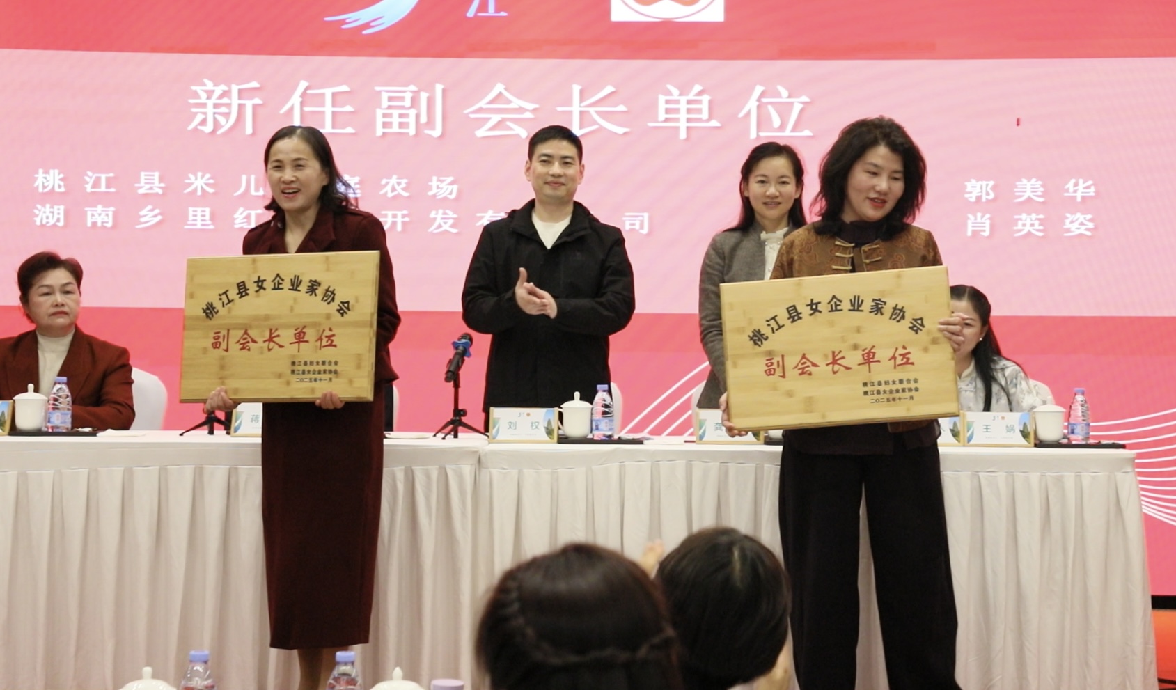 11月28日下午,以“浪漫桃花江 共创她未来”为主题的桃江县女企业家协会2025年年会在华美达酒店召开。50多名女企业家齐聚一堂,共绘巾帼发展新篇章。县委常委、组织部部长刘权,副县长龚胜芳,县政协副主席蒋胜丰出席会议并为年度优秀会员单位和优秀会员颁奖。