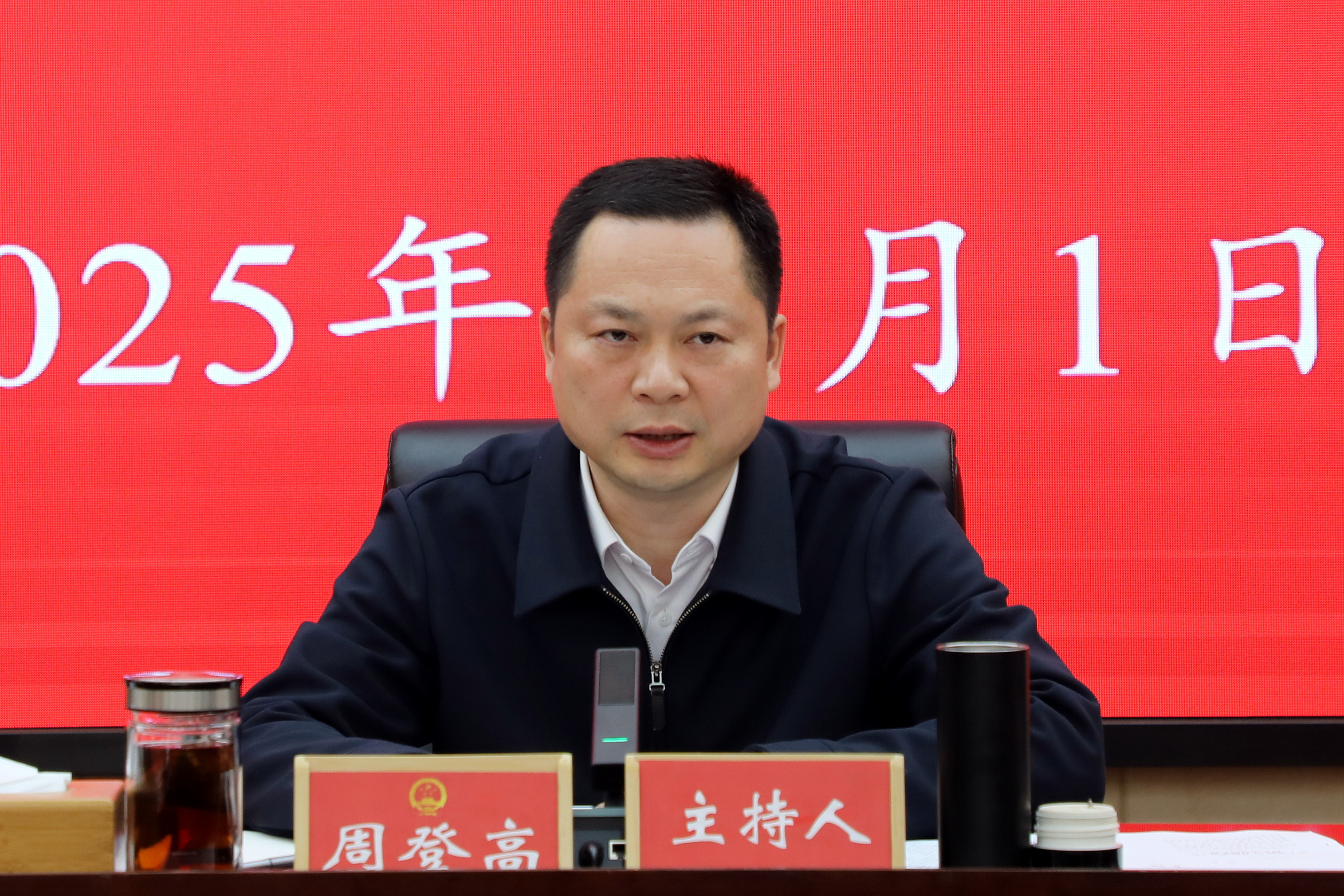 12月1日下午,县委书记周登高主持召开2025年县政府12月党组(扩大)会议。