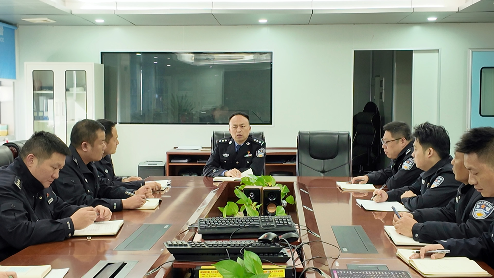 丁葵与专案组同事分析案情 张瑜 摄