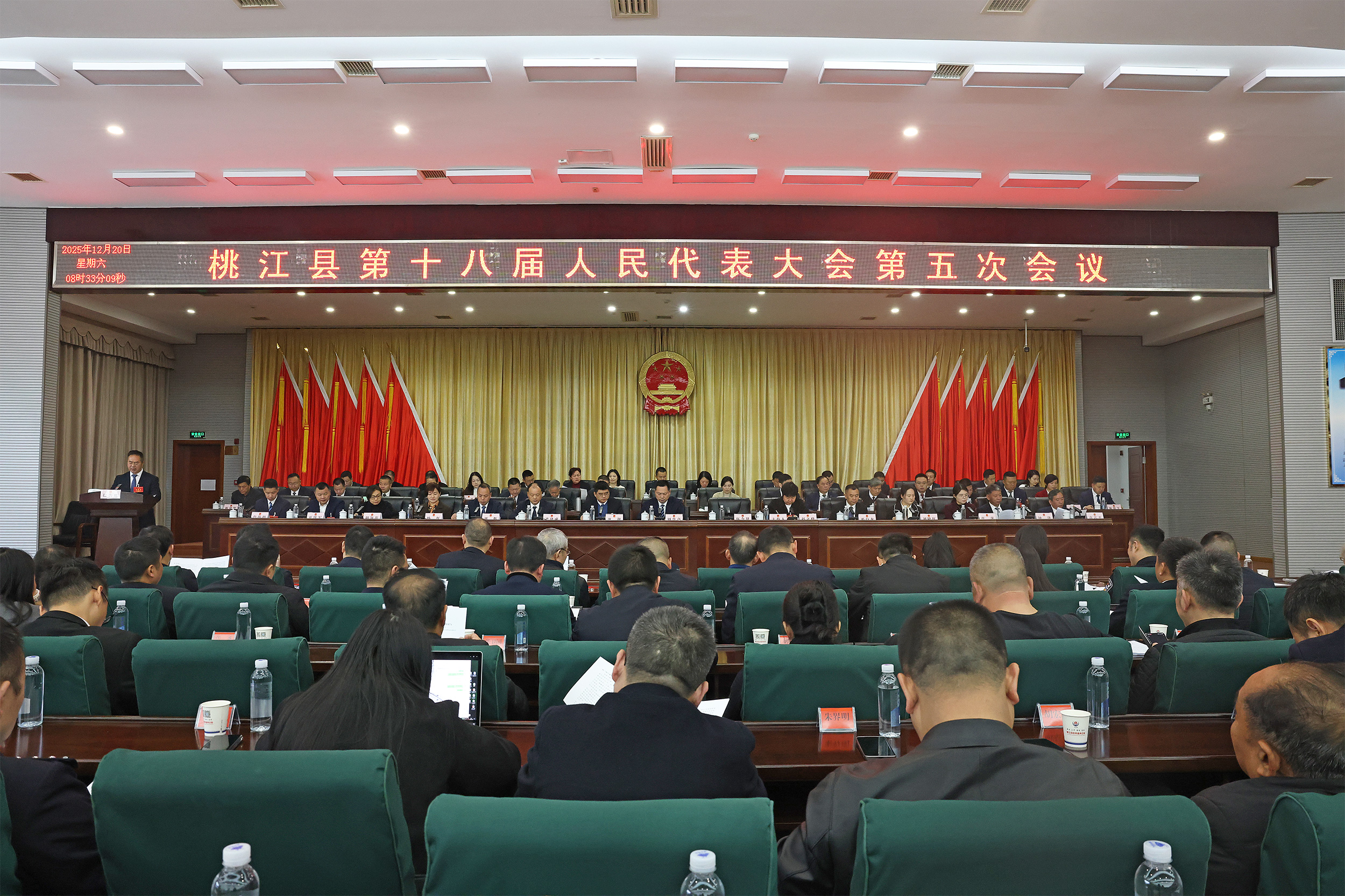 12月20日上午,桃江县第十八届人民代表大会第五次会议召开第二次全体会议。县委书记周登高,县委副书记、代理县长沈澍,县人大常委会主任伍令贤等县领导出席并在主席台前排就座。