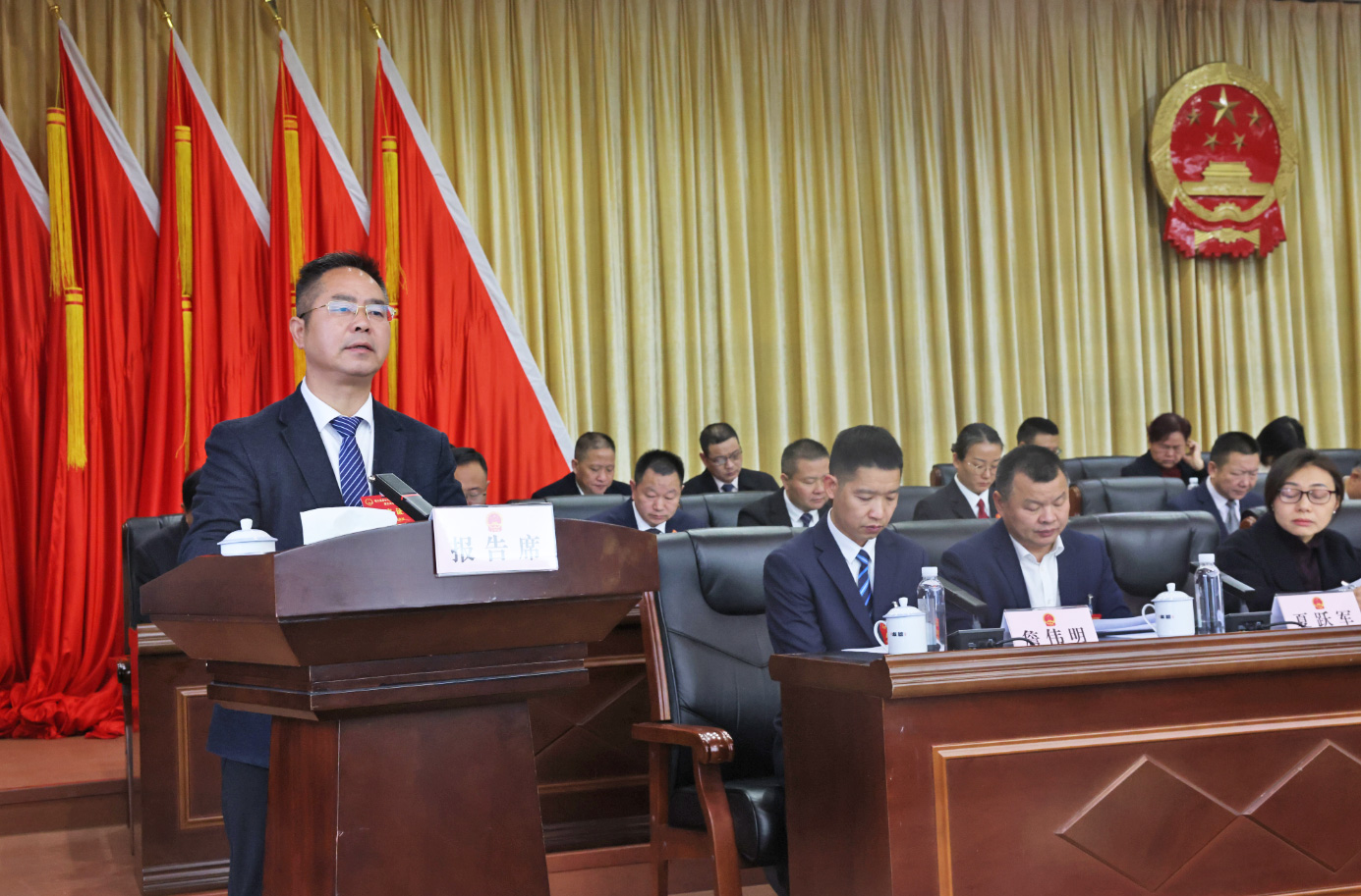 受县十八届人大常委会委托,伍令贤作人大常委会工作报告。