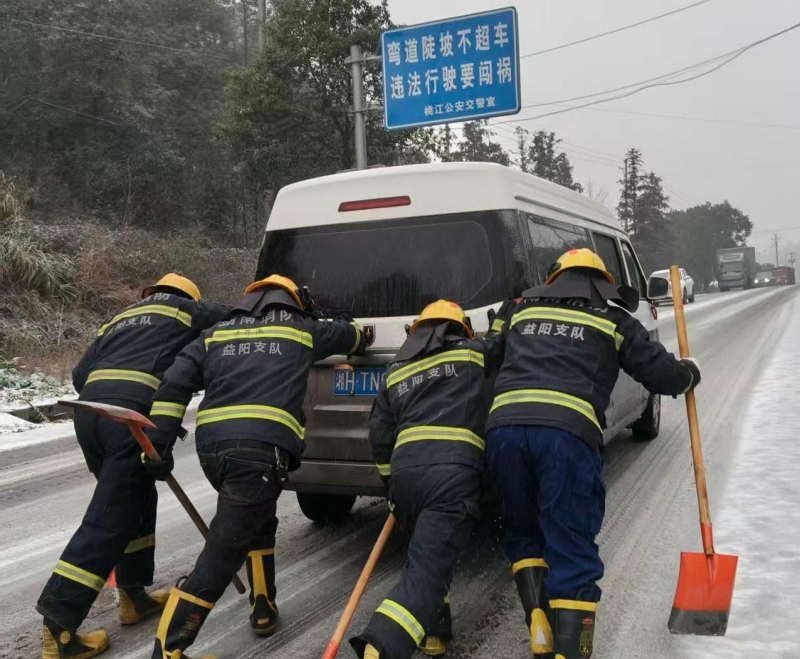 桃江消防人员道路除冰救援被困车辆 康湘武 摄
