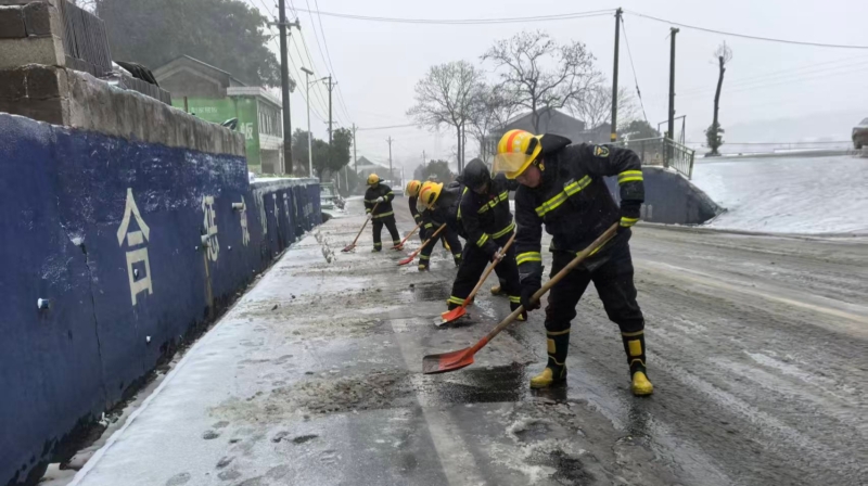 沾溪镇党员干部清扫积雪 沾溪镇 供图
