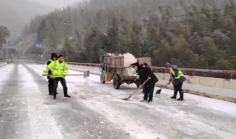 各乡镇严格落实属地管理责任,组织党员干部、应急队员对辖区国省主要干道及易结冰、易打滑路段开展常态化安全巡查,全面排查路面结冰、树木倒伏等安全隐患。及时采取抛洒工业盐、放置安全警示牌、清理路障等防范措施,确保隐患早发现、早处置。同时,各乡镇通过村微信群、大喇叭广播等渠道,向群众推送低温雨雪天气预警信息和安全出行提示,引导群众合理规划行程,提高自我防护意识。1 月20日11点,灰山港镇平安法治办、应急管理办现场查看S223神仙坳路段、G234雪峰山路段交通通行情况,无明显积雪、通行正常。