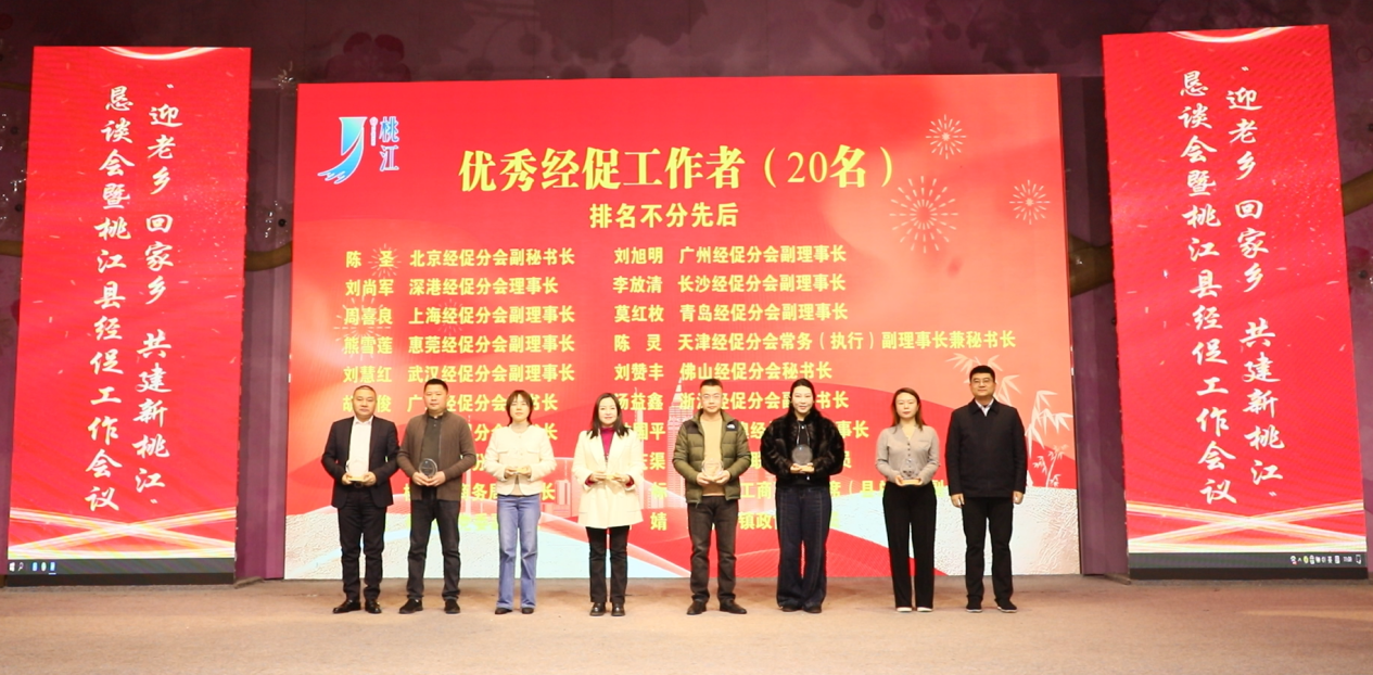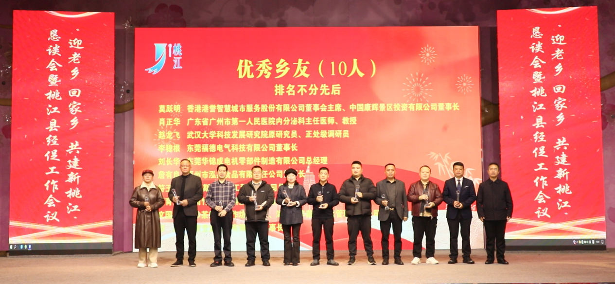 会上,还对一批优秀经促单位、优秀经促工作者、优秀乡友及支持经促工作先进乡镇进行了表彰。各位优秀代表结合自身工作经历先后发言,大家纷纷表示将继续发挥优势,为家乡引资引智、建言献策,当好家乡发展的“宣传员”和“牵线人”,不断推动桃江高质量发展再上新台阶。