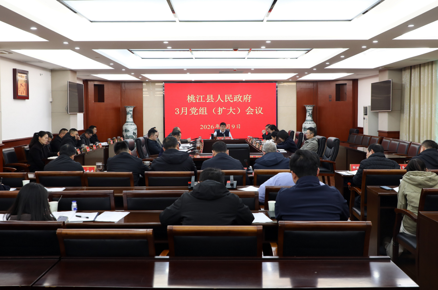 3月9日下午,县委副书记、县长沈澍主持召开2026年县政府3月党组(扩大)会议。