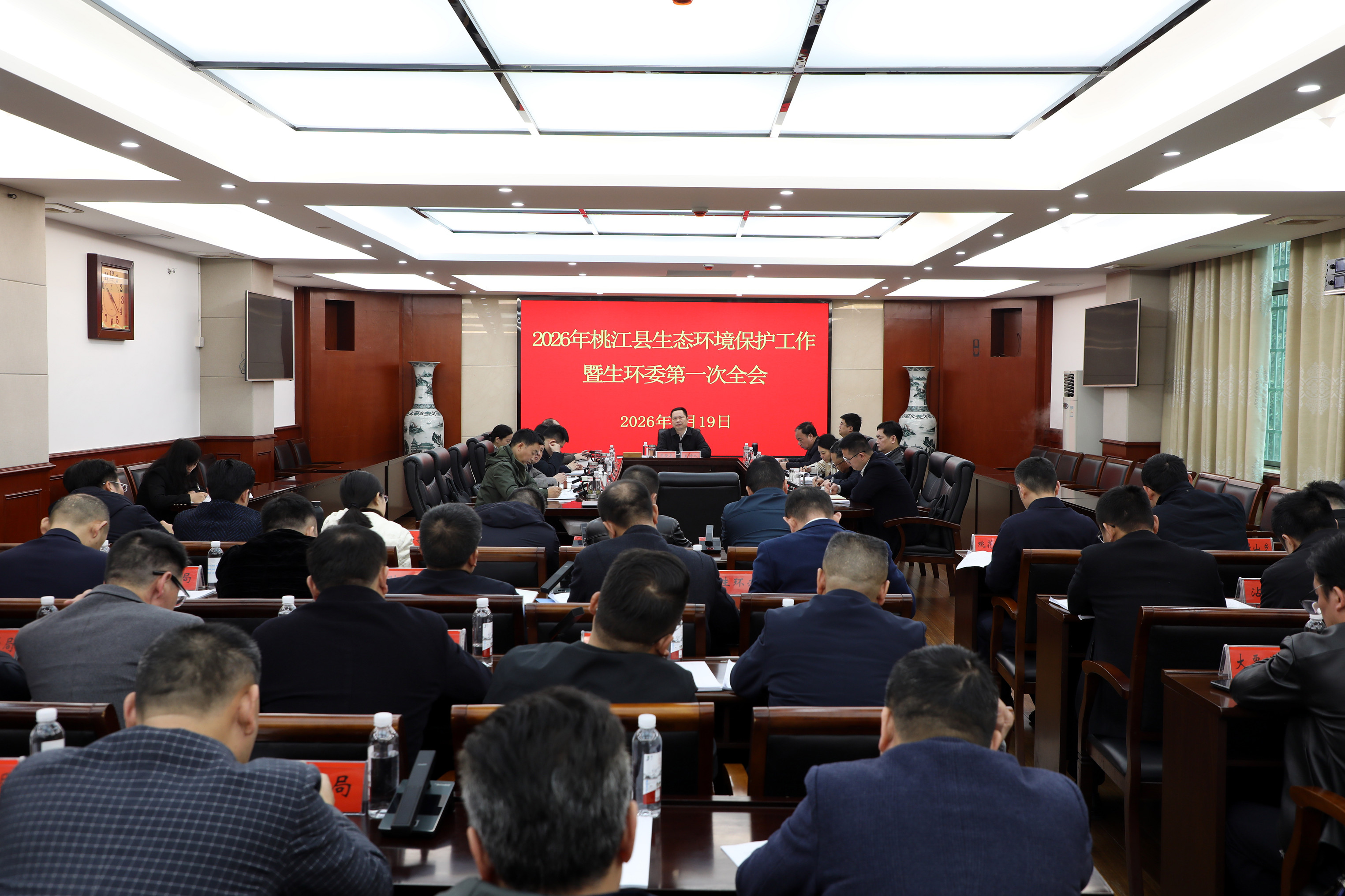 3月19日上午,县委书记周登高主持召开2026年桃江县生态环境保护工作会议暨生环委第一次全会,全面总结2025年生态环保工作,分析当前面临的形势与问题,安排部署2026年重点工作。县委副书记、县长沈澍,县领导陈哲杰、刘造军、龚胜芳、陈丹、曹玉玲、璩海雄、林玉、文志军,副处级干部莫寿国等参加。