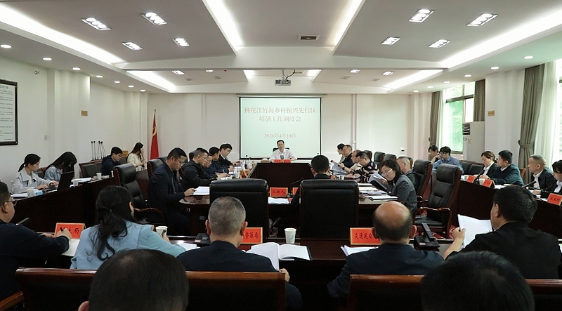 4月10日下午,县委书记周登高主持召开桃花江竹海乡村振兴先行区培创工作调度会。县委副书记、统战部部长王思婷,县领导罗歆辉、林龙飞、刘权、陈哲杰、符赛龙等出席。
