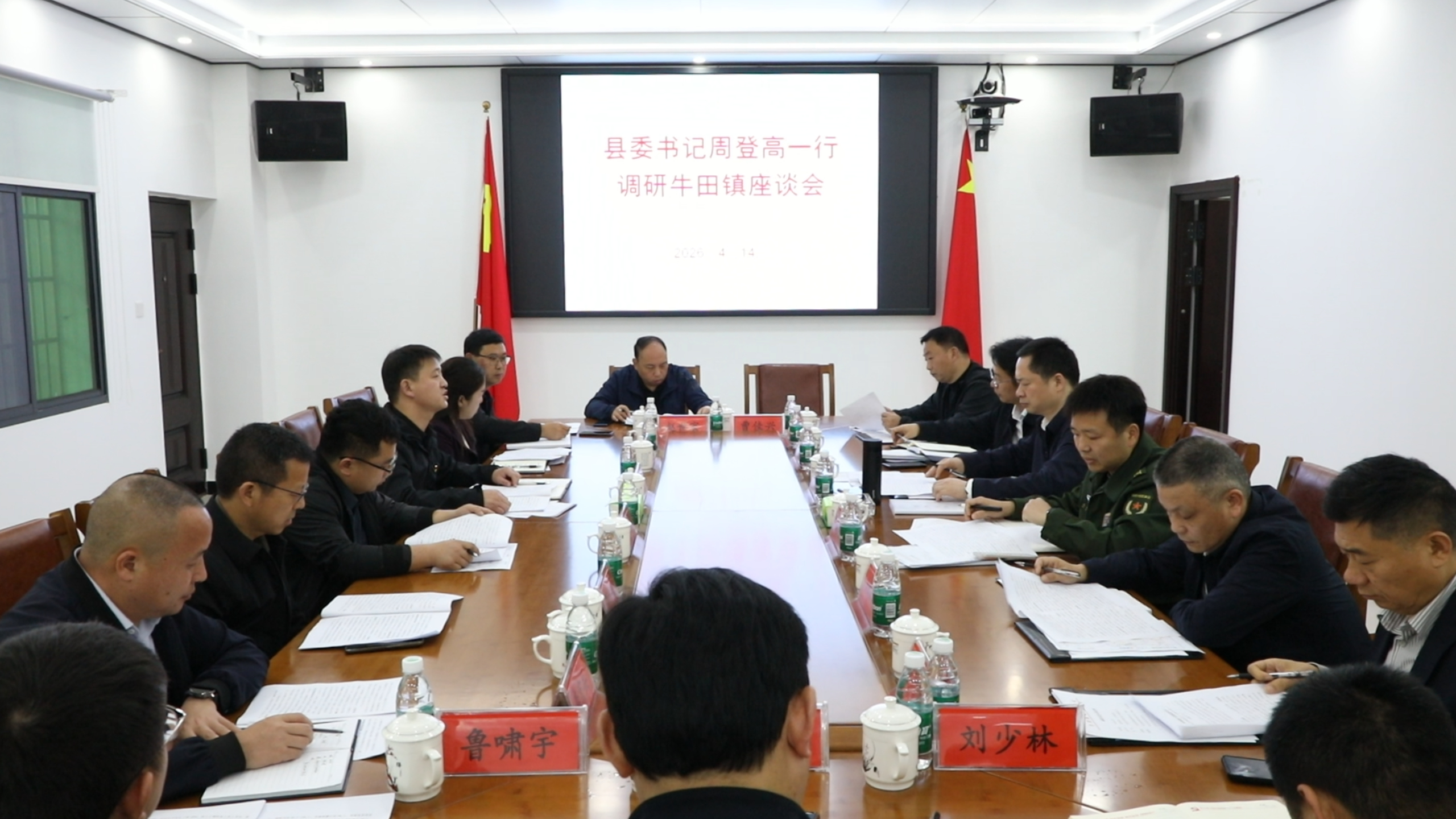 随后,周登高主持召开座谈会,听取牛田镇主要负责人关于全镇工作情况的汇报。县农业农村局、县自然资源局、县交通运输局主要负责人结合职责职能分别发言。