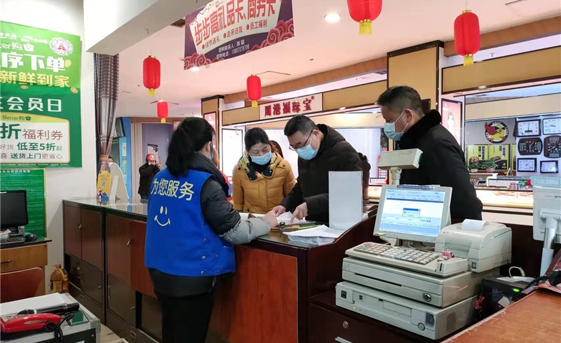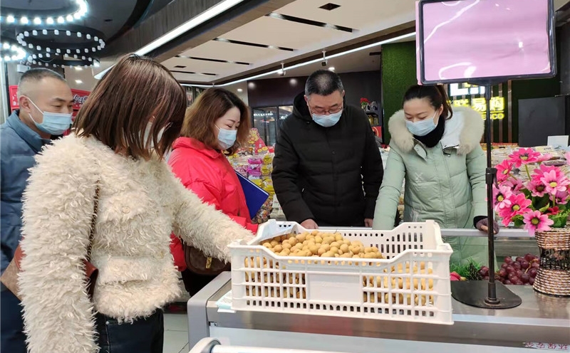 在步步高超市,县市监局执法人员详细查看了体温监测记录、创文创卫宣传栏等资料,并实地检查食品卫生三防设施,并要求超市经营者主动承担社会责任,全面落实疫情防控各项措施,对超市进出人员严格进行体温测量、查验三码,超市员工每周做一次核酸检测。
