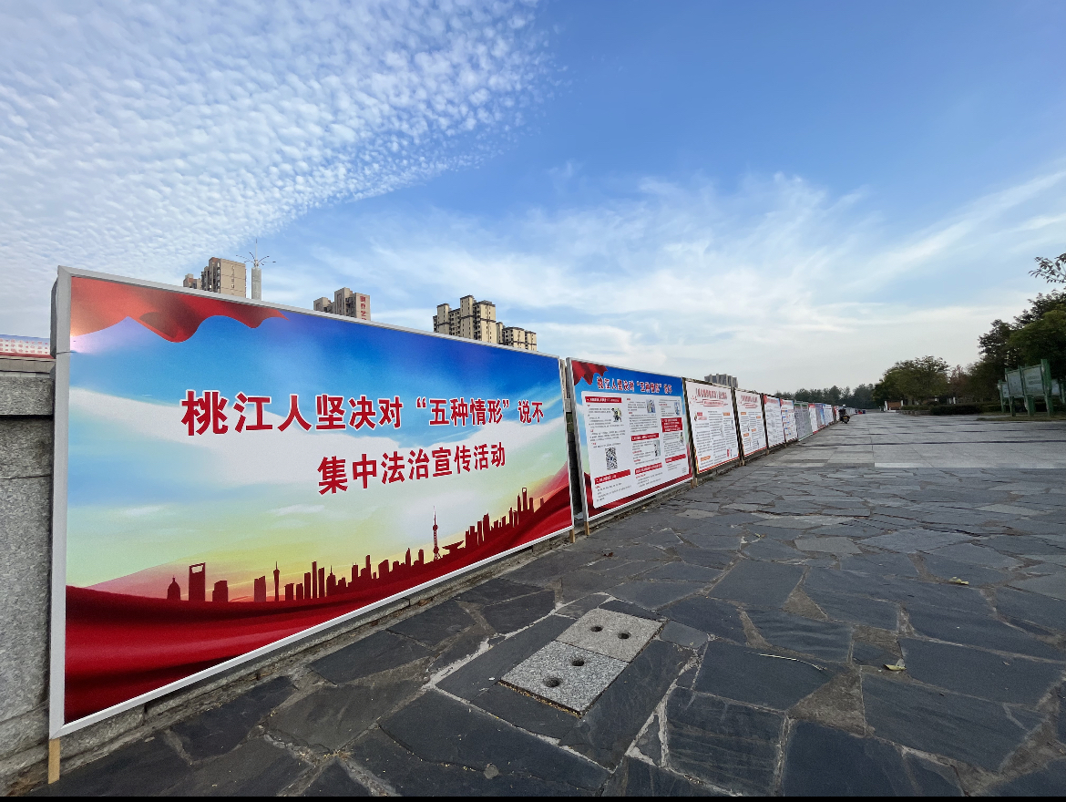 近日,由县委组织部、县委宣传部牵头,县委网信办、县文明办、县民政局、县司法局、县公安局联合开展的“桃江人坚决对‘五种情形’说不”集中法治宣传活动在县城沿江风光带法治宣传长廊举行。