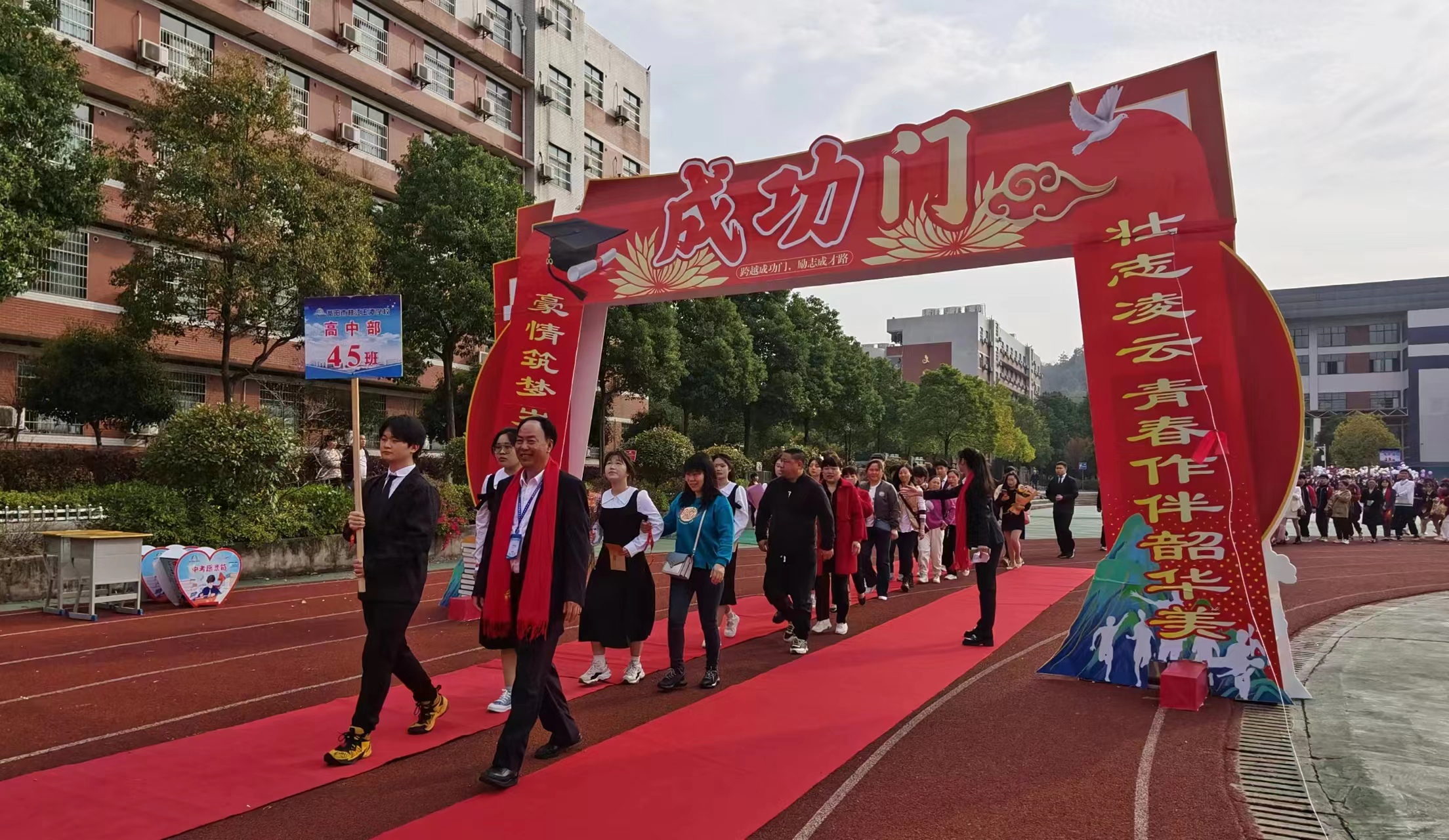 上午9点,该校2023届高三的全体学生,在各班班主任老师的带领下,大家身穿节日的盛装,挽起父母的胳膊,带着必胜的信念,昂首挺胸走过“成功门”。