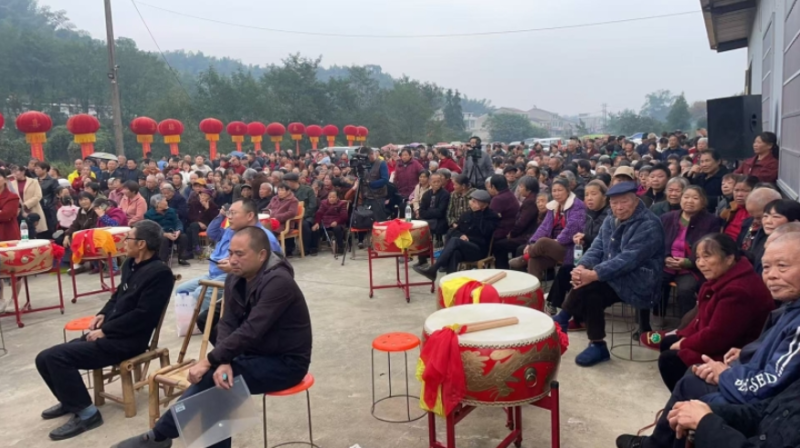 10月29日, 鸬鹚渡镇千工坝村广场人头攒动、欢声满溢——由村老年协会自发牵头,村民群众精心筹备的重阳节主题活动热闹启幕,近800名村民现场围观,与村中老人共庆佳节。