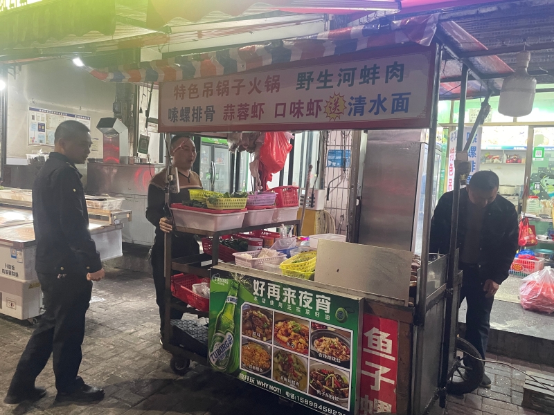 10月29日晚七点半,记者在现场看到,城管执法人员正在对夜市经营秩序进行巡查。为有效应对夜市可能出现的占道经营、噪音扰民等问题,该局提前部署,制定“疏堵结合、精准管理”工作方案。允许符合条件的商户在指定时间、划定区域开展店外经营,切实满足经营需求,激发市场活力;自10月1日起,对上述两个夜市点实行每日21:00至23:00专人值守制度,确保管理力量在高峰时段全覆盖、无盲区。