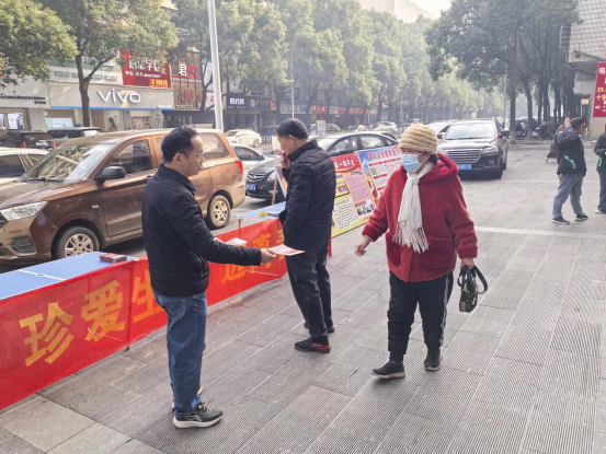 向现场群众发放宣传单 胡凯 摄
