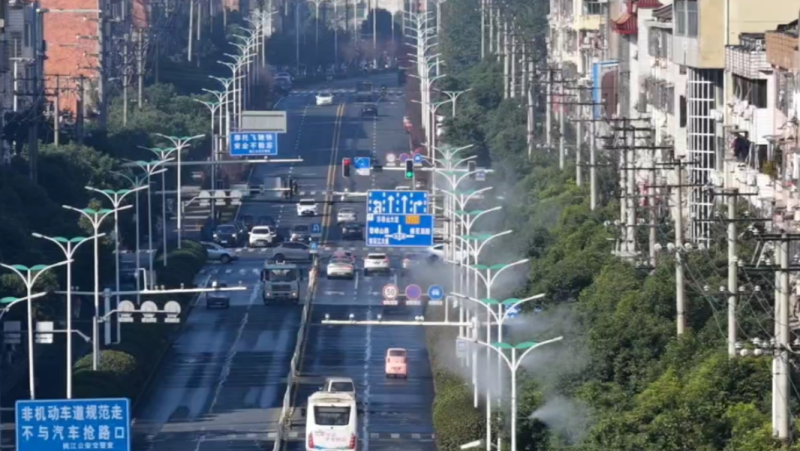 据该局市政管理站相关负责人介绍,这批喷淋设备依托于街道路灯杆改造,采用净化后的自来水作为水源,重点覆盖大气监测点周边3公里及扬尘污染高发路段,通过高压系统将水细化为微米级水雾,不仅能有效缓解车辆行驶带来的扬尘问题,还能吸附空气中的PM2.5等悬浮污染物、提升空气湿度20%左右 。设备运行采用“智能+人工”双调控模式,一方面接入大气监测数据,当区域颗粒物浓度超标时自动启动喷淋;另一方面结合实际优化作业方案,通过“运行二十分钟、间歇四十分钟”的循环模式,避开早晚交通高峰时段。此外,通过加装变频器和隔音膜等措施,持续改进设备运行效率和降噪效果,在保障空气质量改善的同时兼顾市民出行便利,以精细化治理让城市生态环境水平得到提升。