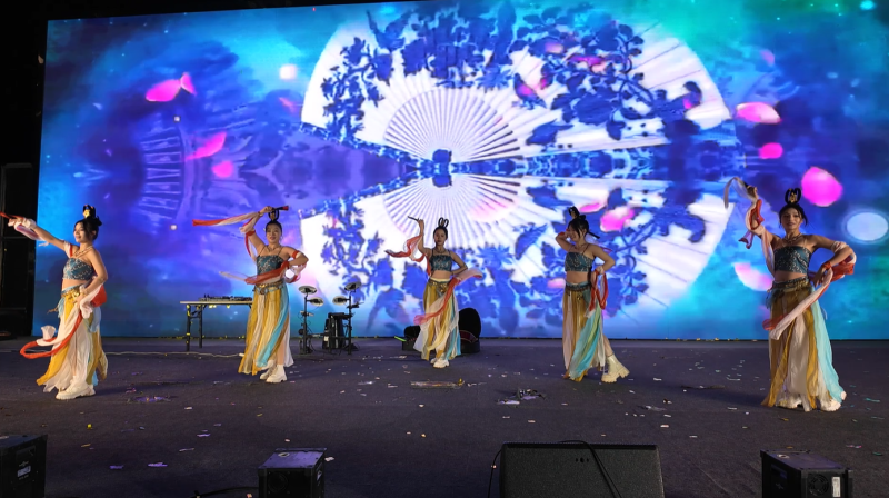 19时30分,音乐会准时启幕。随着专业乐队奏响热场金曲,熟悉的旋律瞬间点燃全场氛围,观众们跟着节奏挥舞手中的荧光棒,竹影摇曳间星光闪烁,勾勒出一幅独具韵味的自然视听画卷。随后,《时代浪潮》《绝世舞姬》《APT》等风格各异的歌舞表演轮番登场,动感的节拍、优美的舞姿将现场气氛推向一个又一个高潮。演出间隙的抽奖环节更是惊喜连连,主持人通过“听音辨歌”等趣味互动游戏,送出精美礼品与竹海幻境折扣票等福利,为这场迎新年盛宴增添了更多欢乐色彩。