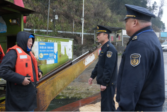 杨华(中)提醒船主驾驶员做好防冻防滑工作 薛雅琴 摄