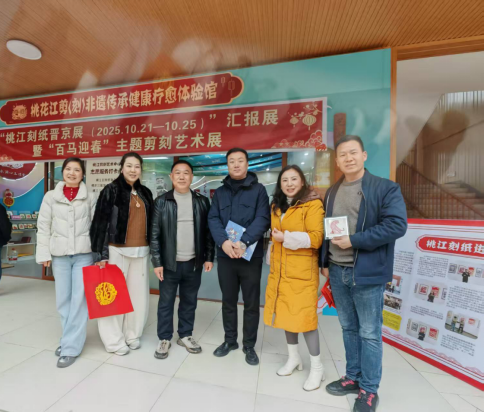 其间,考察团还前往桃花江竹海景区,参加“向往新生活 嗨购桃花江”年货节巡游活动。在“桃江刻纸晋京汇报展”暨“百马迎春”剪刻艺术展现场,精美的非遗技艺令乡友们驻足流连。剪刻中心向客人们赠送了寓意吉祥的“龙”“马”生肖刻纸作品及新书《桃江刻纸》,让这份独特的家乡文化伴手礼成为连接武汉与桃江的情感纽带。