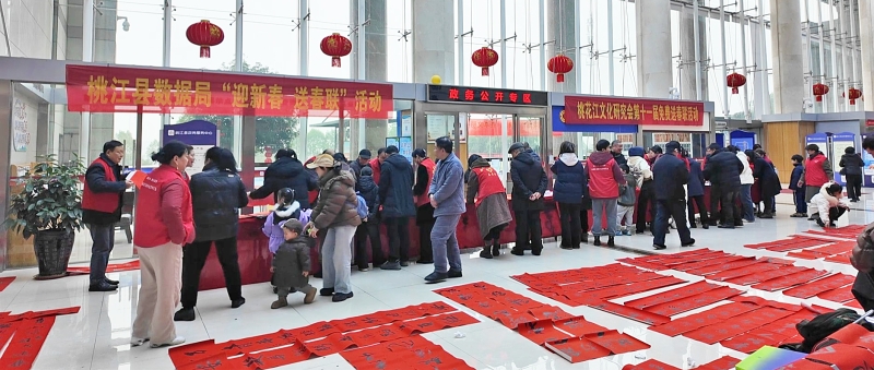 2月10日,县数据局联合桃花江文化研究会在县政务中心大厅开展“迎新春 送春联”文化惠民活动。