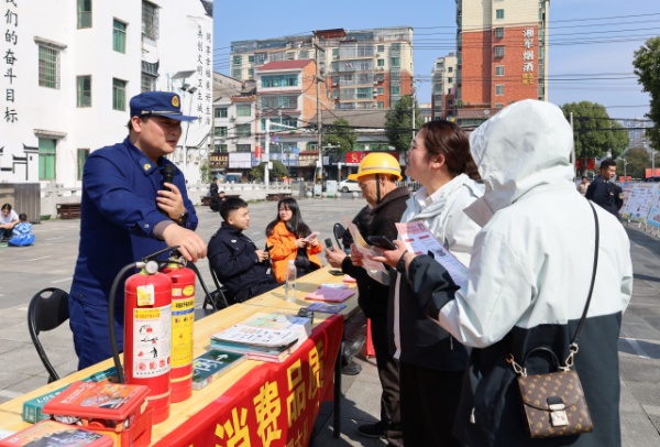 3月13日,桃江消防在全县“3·15”集中宣传主会场设置阵地,通过实物对比教授群众辨别消防器材真伪。