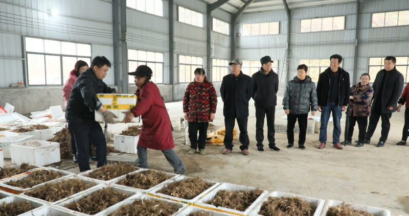 村党总支书记尹明一边将黄精苗发放到村民手中,一边对他们说,家里的房前屋后都可以种,村集体经济合作社负责回收,大家只要种得好,不用担心销售。