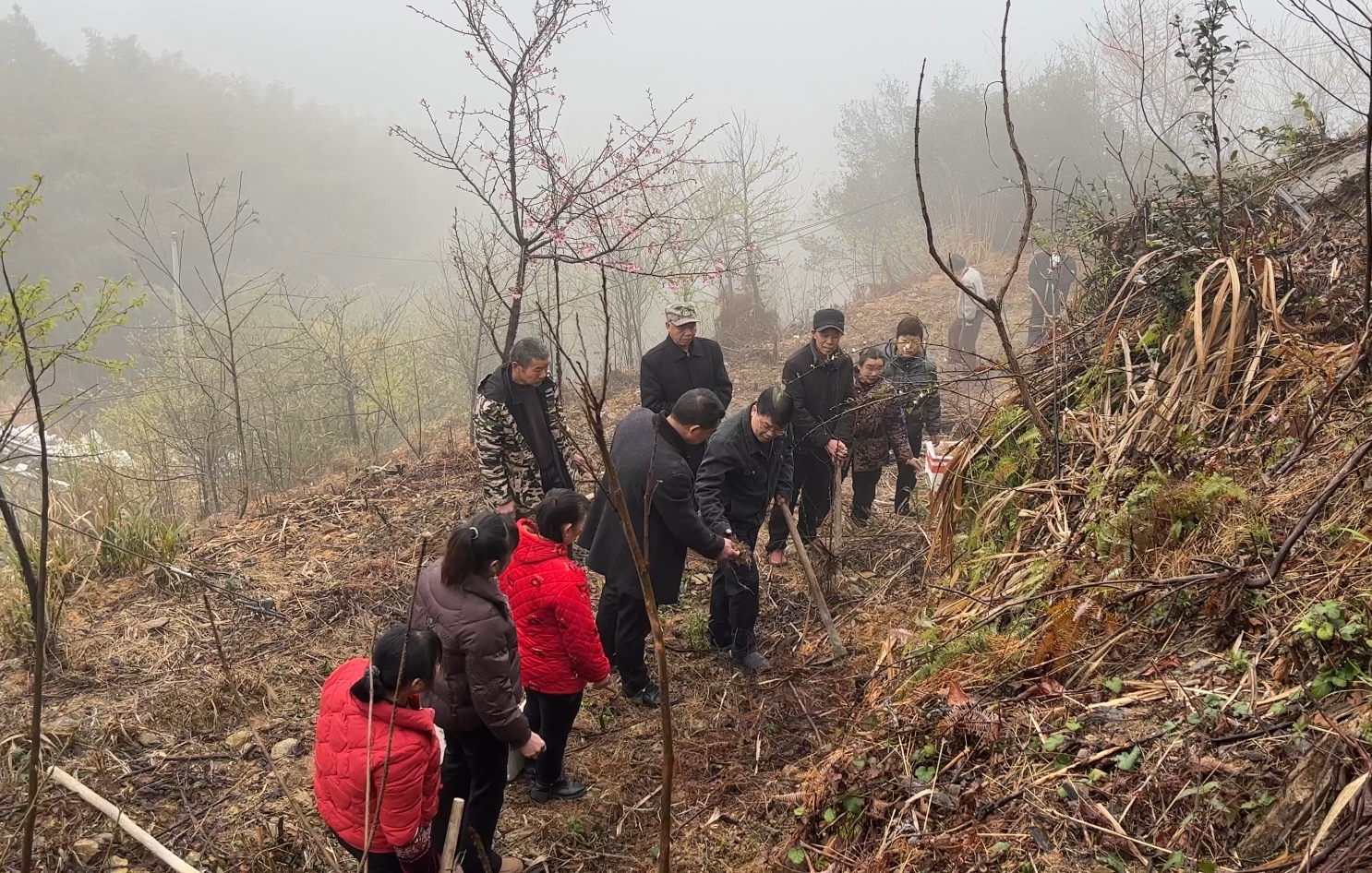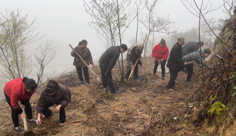 发完黄精苗,村干部带领村民们来到种植基地,亲自示范种植方法。尹明弯下腰,拿起一株黄精苗,边操作边细致讲解:“大家注意,坑要挖得深浅适中,把苗扶正,再轻轻盖上土,稍微压实,这样黄精苗才能更好地扎根生长。”