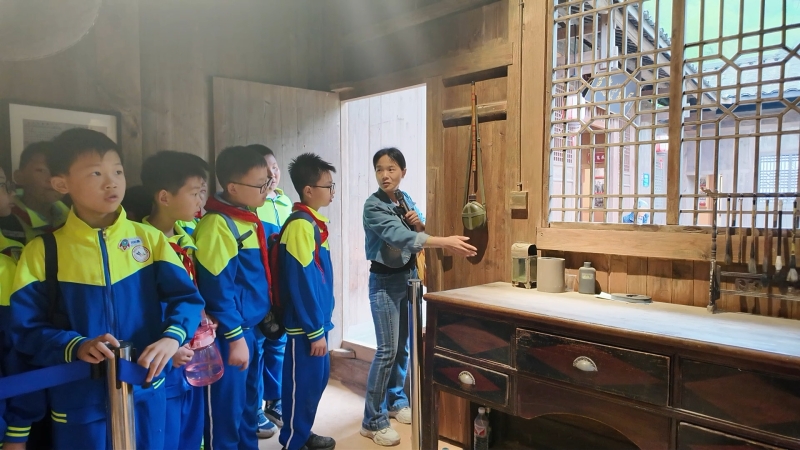 上午9点,学员们在讲解员的带领下走进莫应丰故居。故居内陈列着莫应丰手稿、乐器以及生活用品,生动展现了这位首届茅盾文学奖得主勤勉好学、多才多艺的成长历程。在莫应丰卧室的书桌前驻足,学员们听他幼时“拖着竹子在崎岖山路贴补家用”的艰辛故事,感悟“贫苦中坚持文学理想”的坚韧精神。莫应丰“少年作家班”学员周梓楠说:“莫爷爷让我们知道了,真正的乡村写作不是田园牧歌,而是带着泥土味的生命抗争。”