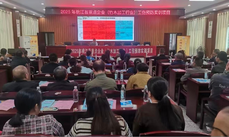 9月25日下午,桃江县重点企业(竹木加工行业)工伤预防实训在鲊埠回族乡举办,全乡20余家竹木加工企业的安全生产分管负责人、专职安全员、班组长及一线员工共计70余人参训。