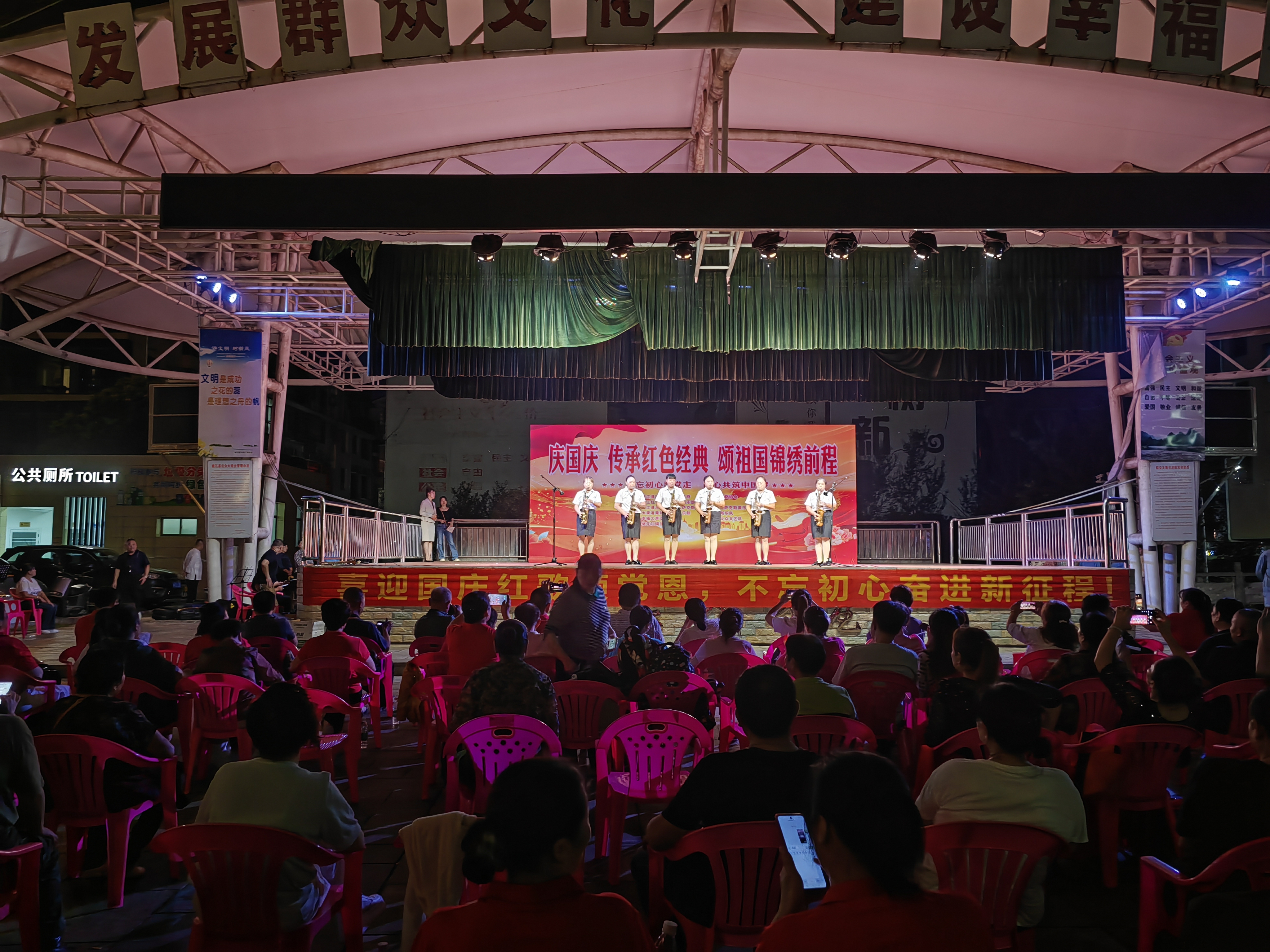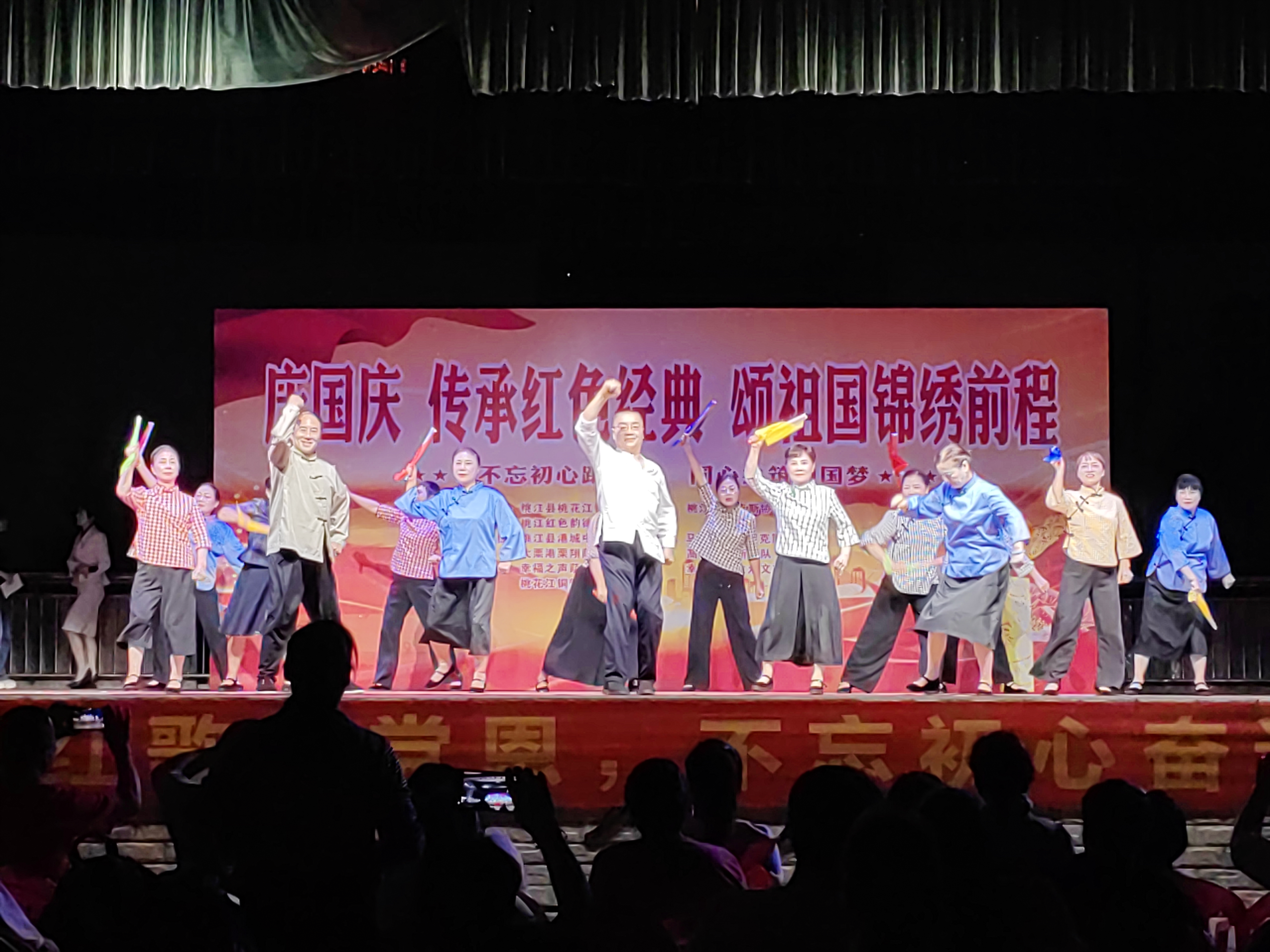 9月28日晚,桃花江镇“庆国庆 传承红色经典 颂祖国锦绣前程”萨克斯主题晚会在大汉假日广场精彩上演,来自全县各地的7个萨克斯演奏团队喜迎国庆、祝福祖国。