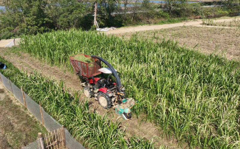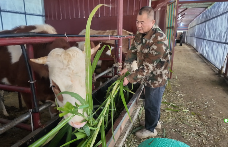 11月24日清晨,阳光洒满牛田镇杉树仑村德纯湾组。益陶牧业家庭农场的牛舍内,农场主陶雄壮正将鲜嫩牧草投进食槽,几头黄牛甩着尾巴大口吞咽。他擦了擦额头的汗珠介绍,农场饲喂猪牛的牧草均为自主种植,不仅新鲜划算,更从源头减少了养殖污染,且牧草营养丰富、适口性佳,能增强牲畜抗病能力,让肉质更加紧实。