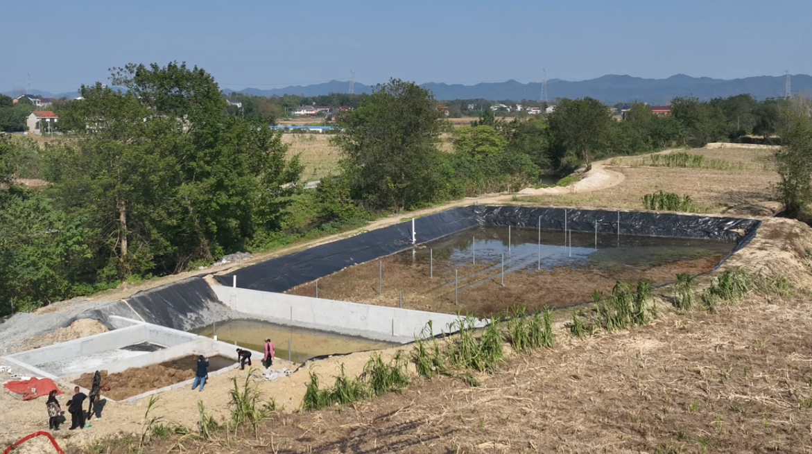 顺着陶雄壮指引的方向,一座容量4500立方米的粪污水处理池正加紧收尾,工人忙着铺设防渗膜,确保设施达标投用。据了解,该设施是农场响应政府畜禽污染治理与农业废弃物资源化利用号召,今年重点推进的配套建设项目,预计下月正式投用,届时可集中处理周边4500吨粪污水,进一步完善循环链条。