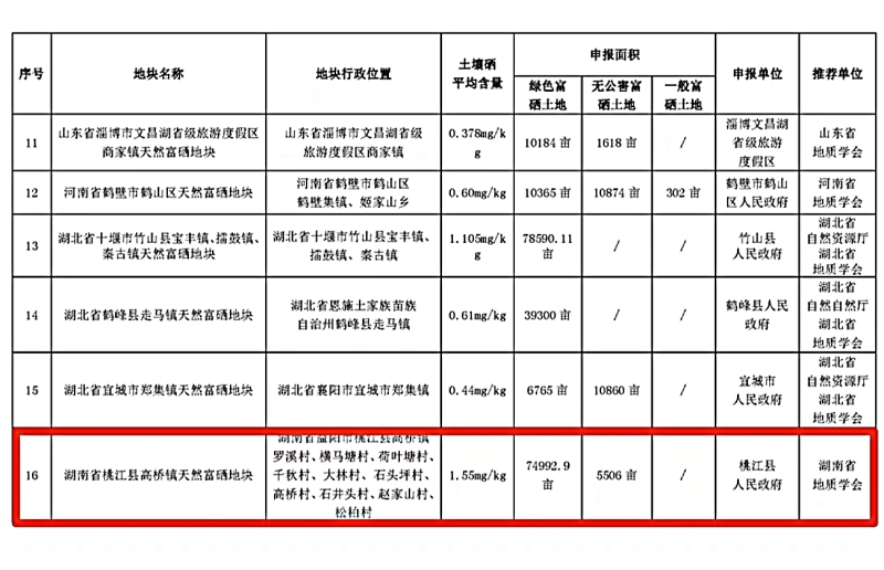 近日,中国地质学会公布第五批天然富硒土地认定结果,高桥镇天然富硒地块以8万余亩的土地规模、1.55mg/kg的平均硒含量成功入选,全国同批地块硒含量最高、湖南省同类型认定面积最大,是益阳市目前唯一被国家级认定的天然富硒地块。