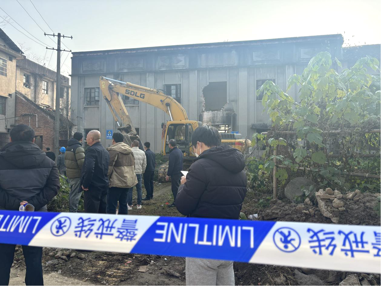 12月18日上午,马迹塘镇资沂路机器轰鸣,马迹塘镇人民政府正在组织拆除马迹塘镇原卫生院大楼,现场人群共同见证拥有50多年历史的原镇卫生院门诊楼光荣退出历史舞台。