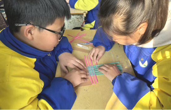 实践环节,每一位学生都化身成一名“环保小竹匠”,体验竹编书签的制作。看上去毫无价值的竹篾通过学生们的精心编织,变为一枚枚独一无二的绿色书签。这不仅是一次简单的“绿色实践”,更是学生们生动的绿色宣言。