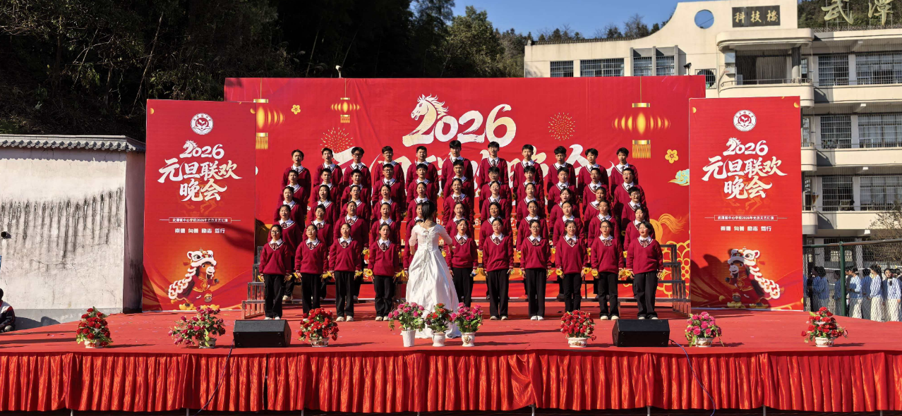 1月7日下午,武潭镇中学举行2026年元旦文艺汇演,全校师生自编自导自演29个文艺节目,共同迎接新年的到来。