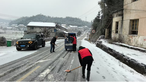 【应对低温雨雪冰冻天气】 武潭镇扫雪除冰保民安
