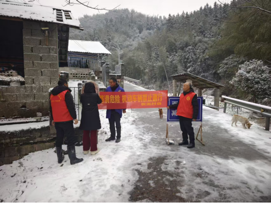 “近几天,温度较低,路面结冰,尽量不外出,如需外出一定要注意安全,戴好头盔,小心滑倒,冬季取暖一定人走电断,用木炭烤火要注意房间的通风,防止中毒。”各村(社区)利用“村村响”广播、宣传车用熟悉朴素的方言向村民宣传低温雨雪冰冻天气安全注意事项,引导群众安全出行。此外,12支由各村(社区)村干部及党员组成的党员志愿者队伍挨家挨户入户宣传安全注意事项,重点关注低保、五保、留守老人等弱势群体,安全宣传确保不漏一人。