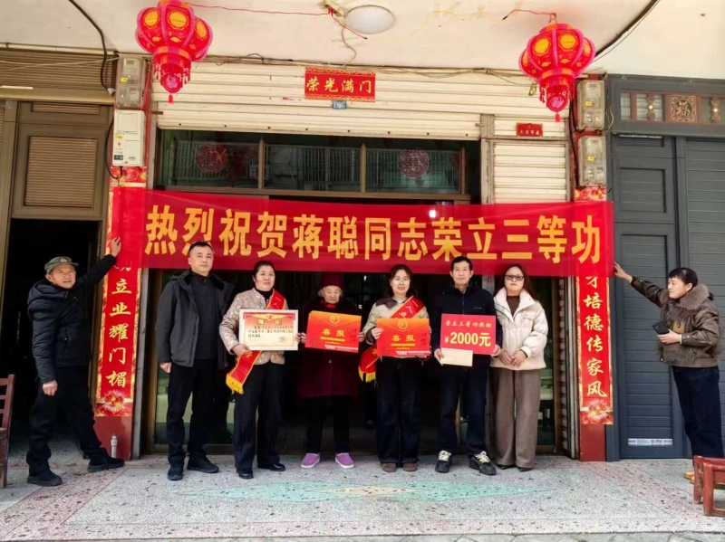 2月2日,武潭镇退役军人服务站为现役军人蒋聪家庭送达三等功喜报。