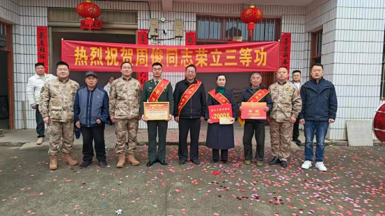 3月3日,灰山港镇为荣立三等功的现役军人周俊及其家属送上立功喜报、慰问金。