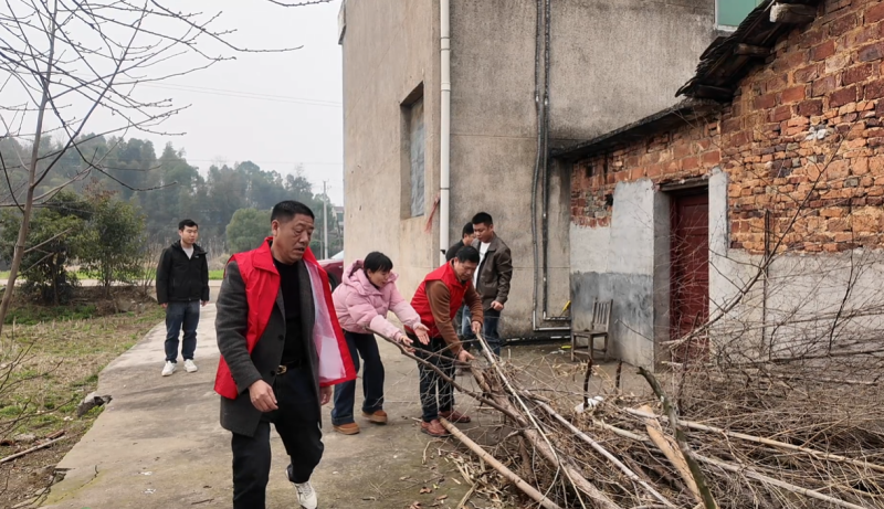 村干部和志愿者一道帮助村民整理庭院 莫斌 摄