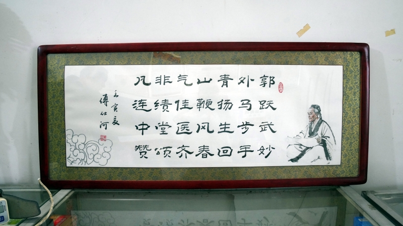 走进桃江县浮邱山乡浮邱山村卫生室,最先映入眼帘的,不是药柜,也不是锦旗,而是一幅挂在雪白墙壁上的书法作品。