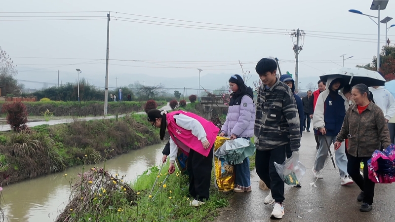 下午两点,在横马塘村,师生和家长在村委集合后迅速投入劳动。大家手持火钳、垃圾袋,仔细清理路面烟头、纸屑,合力清扫枯枝落叶,不放过任何一处卫生死角。分工协作间,现场一派热火朝天的景象。