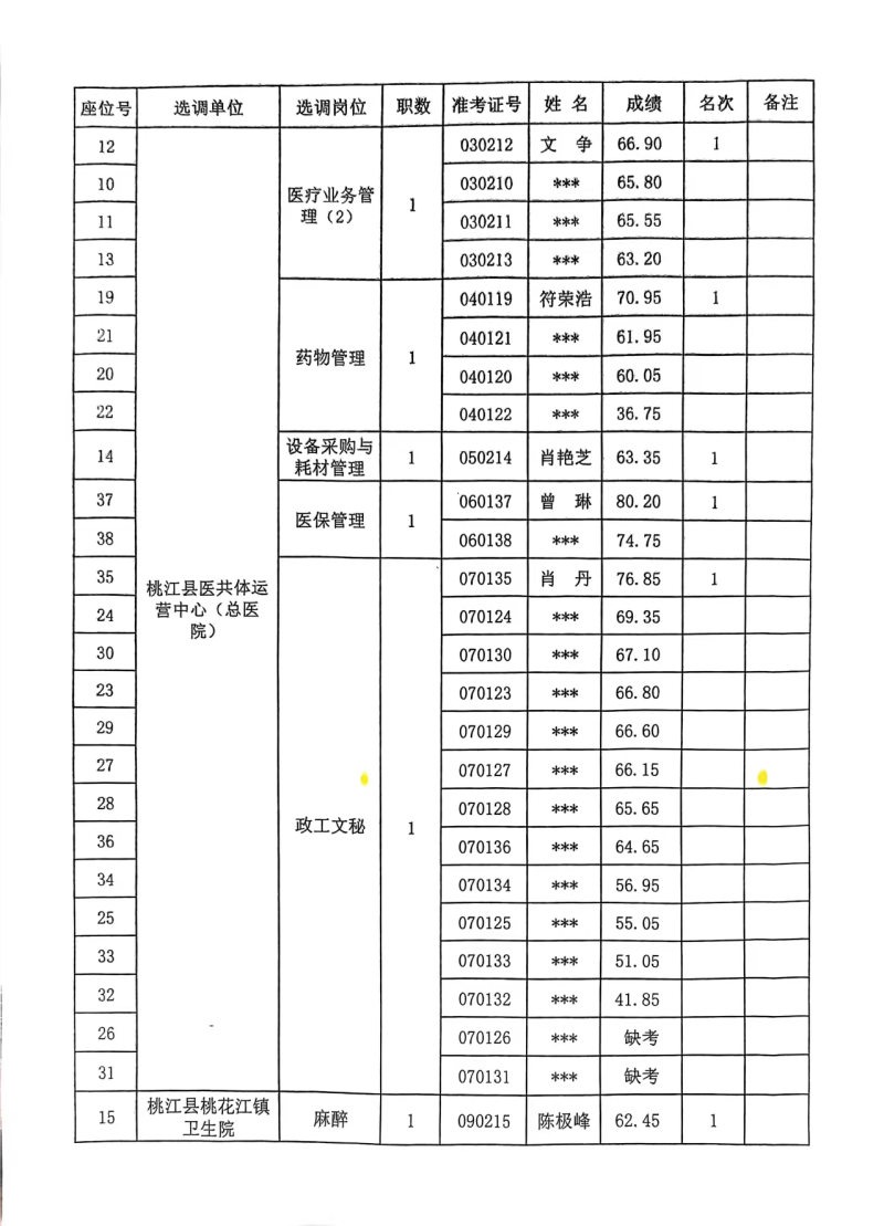附件:桃江县卫生健康系统2025年选调事业编制工作人员笔试成绩