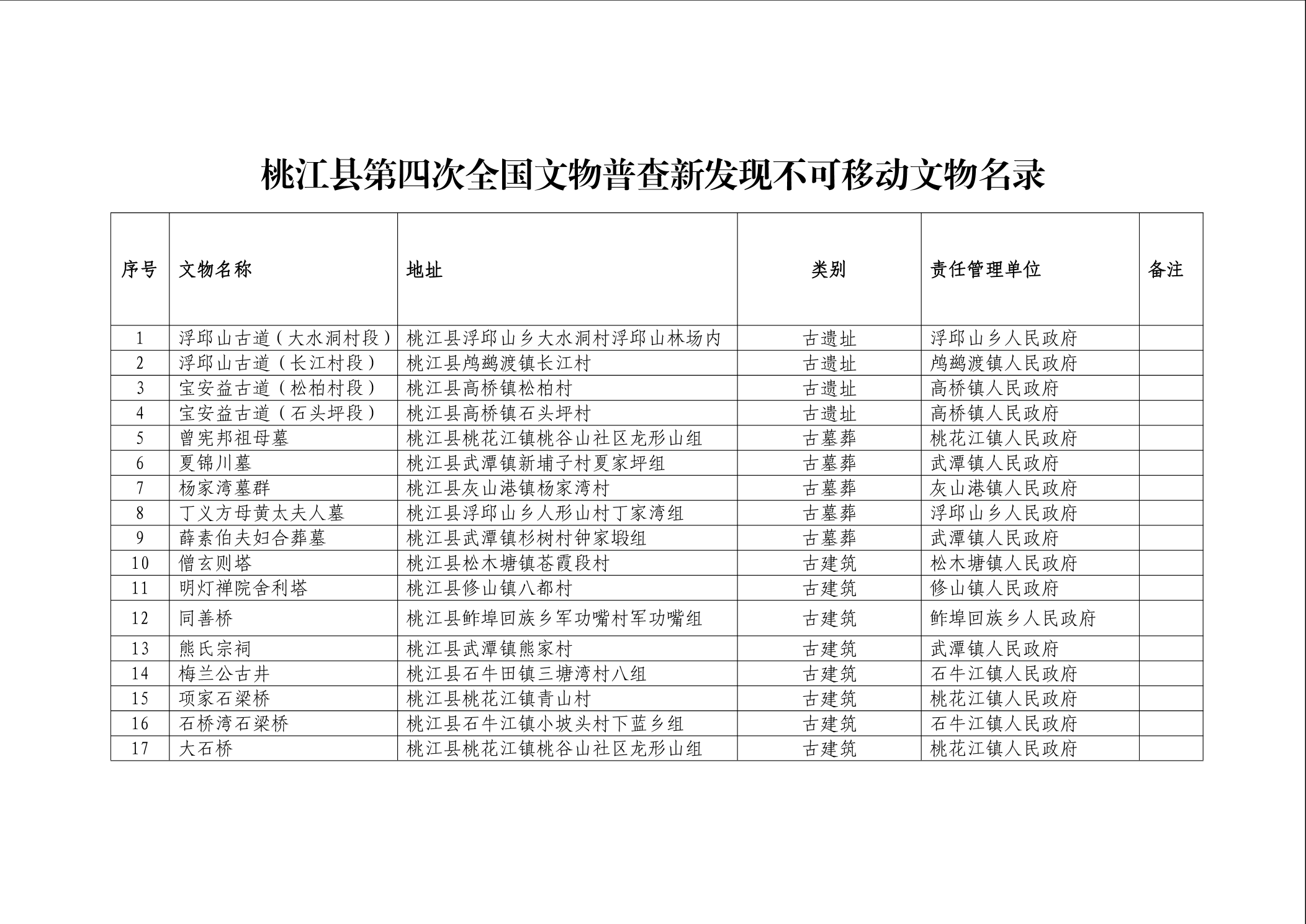 关于桃江县第四次全国文物普查新发现不可移动文物名录的公示