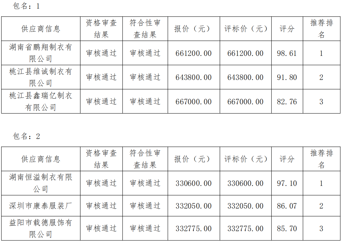 桃江县职业中专学校2025级新生校服采购项目公开招标中标公告项目于2026年2月12日结束,现将成交结果公告如下: