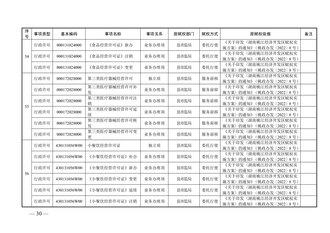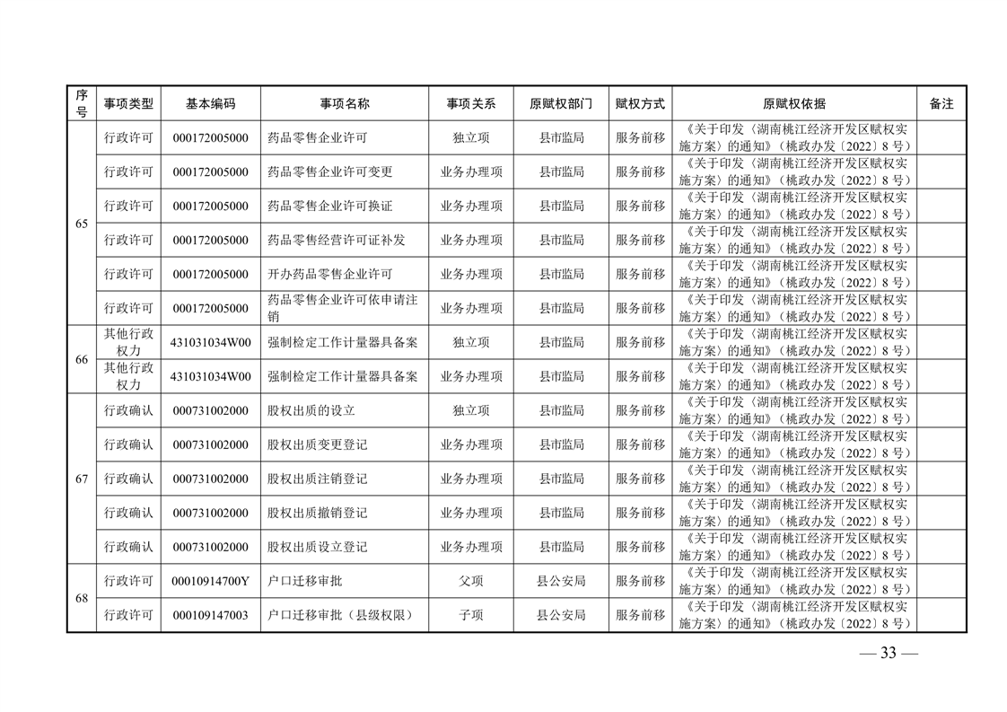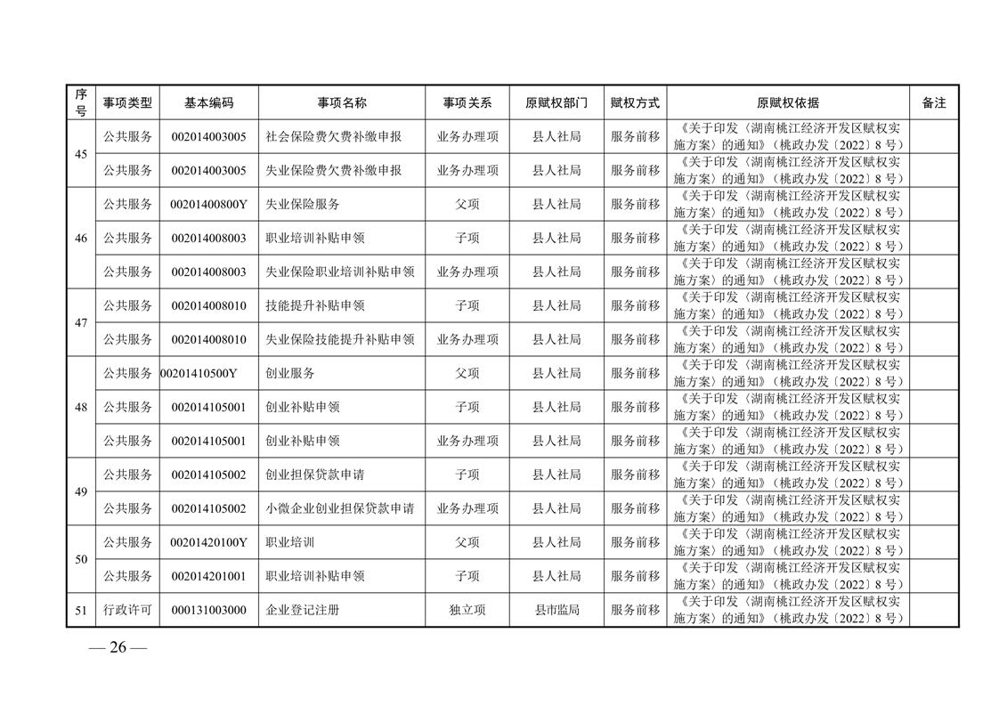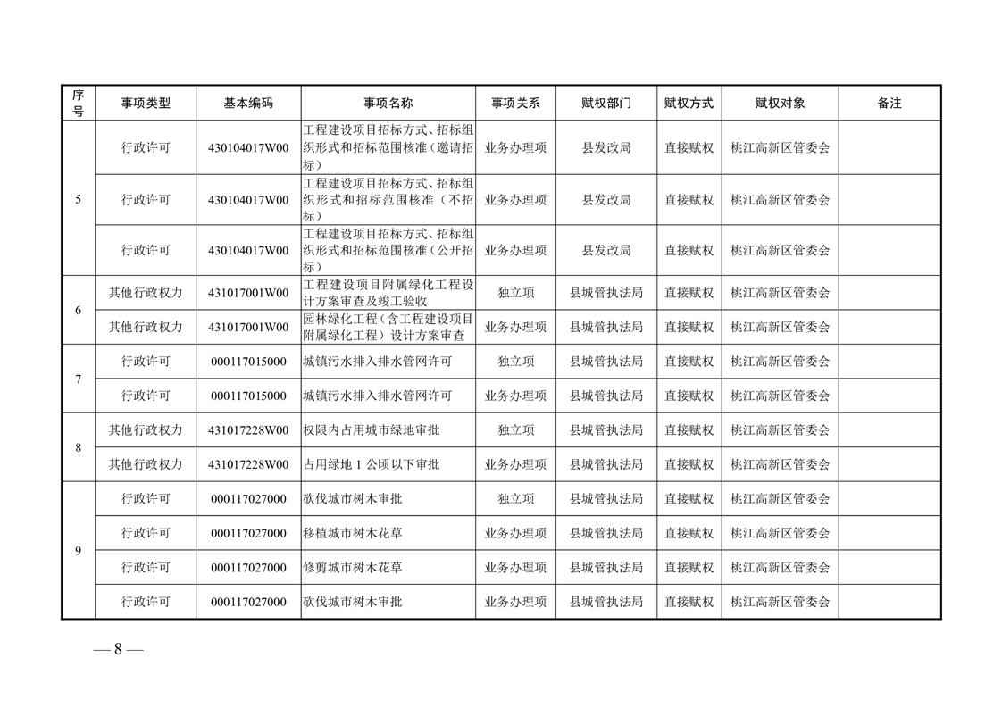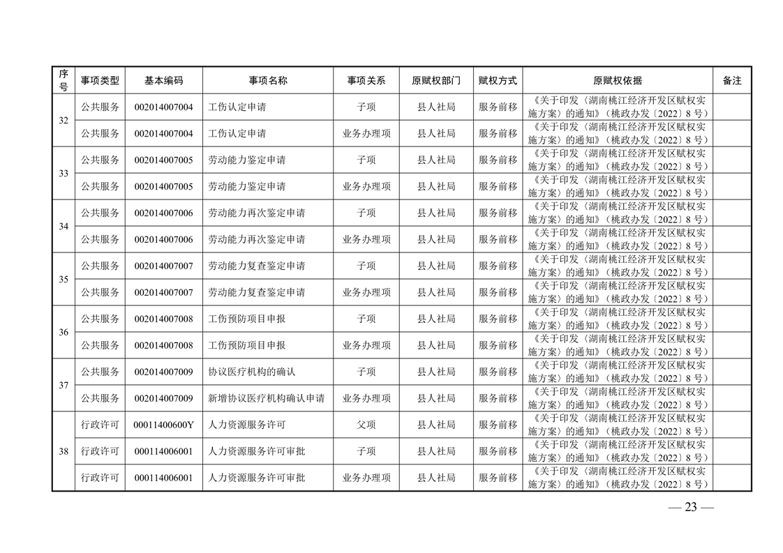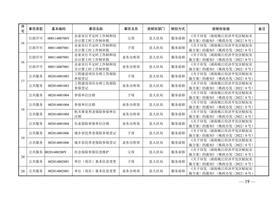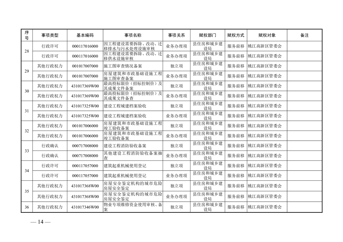 桃江县人民政府 关于印发《桃江高新区行政审批赋权事项保留清单》《桃江高新区行政审批赋权事项取消清单》《桃江高新区社会管理和公共服务职能新增事项清单》《桃江高新区社会管理和公共服务职能保留事项清单》《桃江高新区社会管理和公共服务职能移交事项清单》的通知